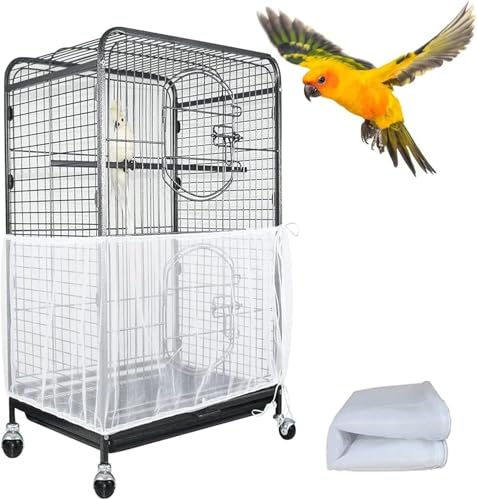 ASOCEA Extra stor fågelbur fröfångarskydd universellt fågelbursskydd nylon nät för papegoja parakit ara lovebird afrikansk grå - vit (inkluderar inte fågelbur)