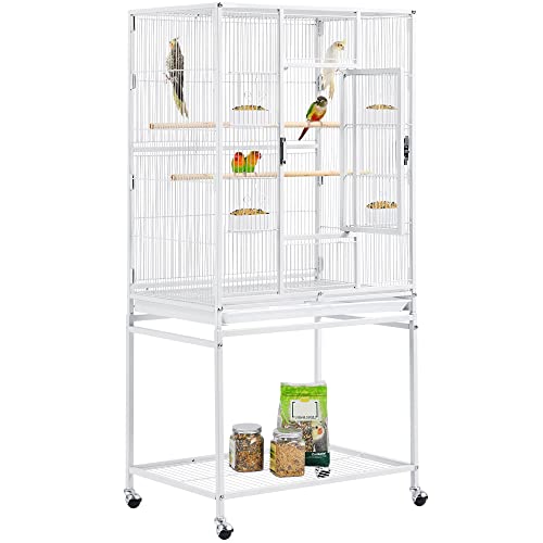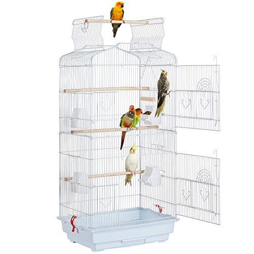 Yaheetech Fågelbur fågelvoljär med dörr och hjul fågelhus för nymfparakiter, papegojor vit