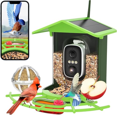 Fågelfoder med kamera, fågelhus med 4 MP kamera, fågelmatare trädgård, fågelmatningsstation med video/fotoinspelning, AI-identifiering, rörelsedetektering, larm, mörkerseende, IP65 vattentät