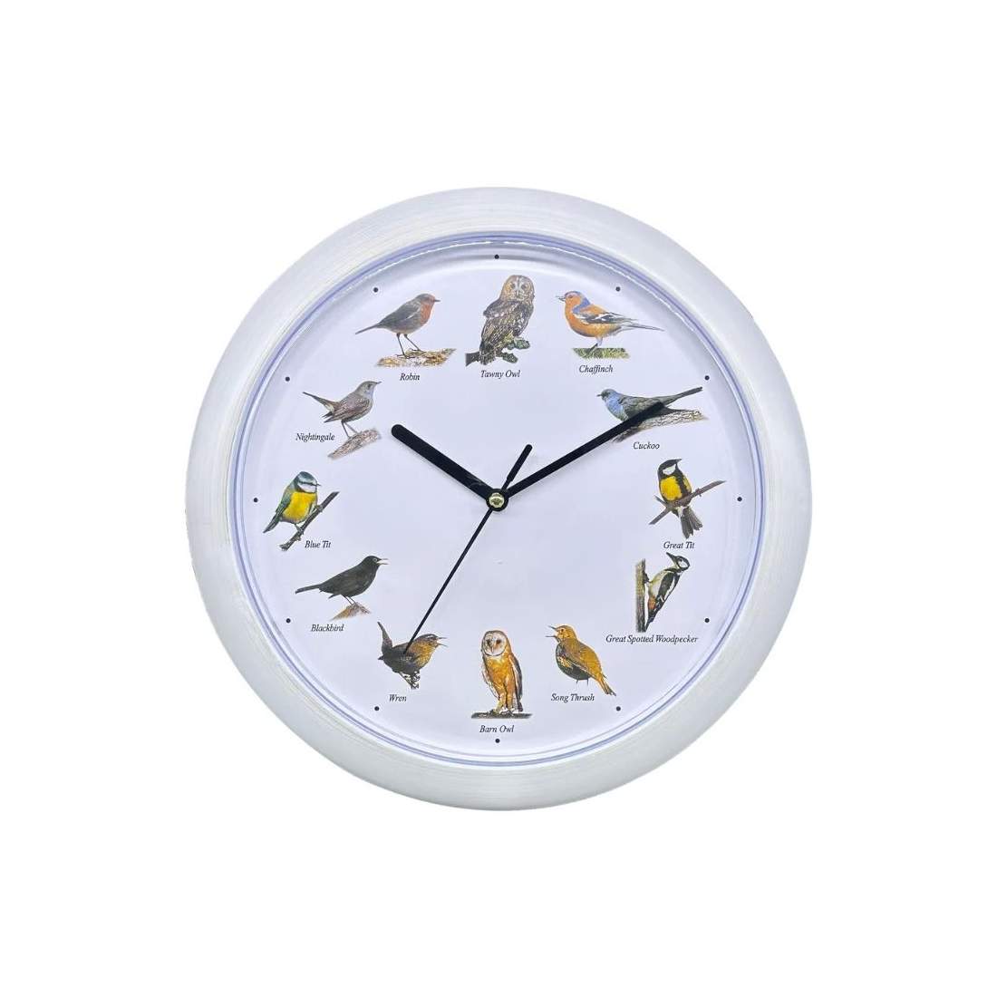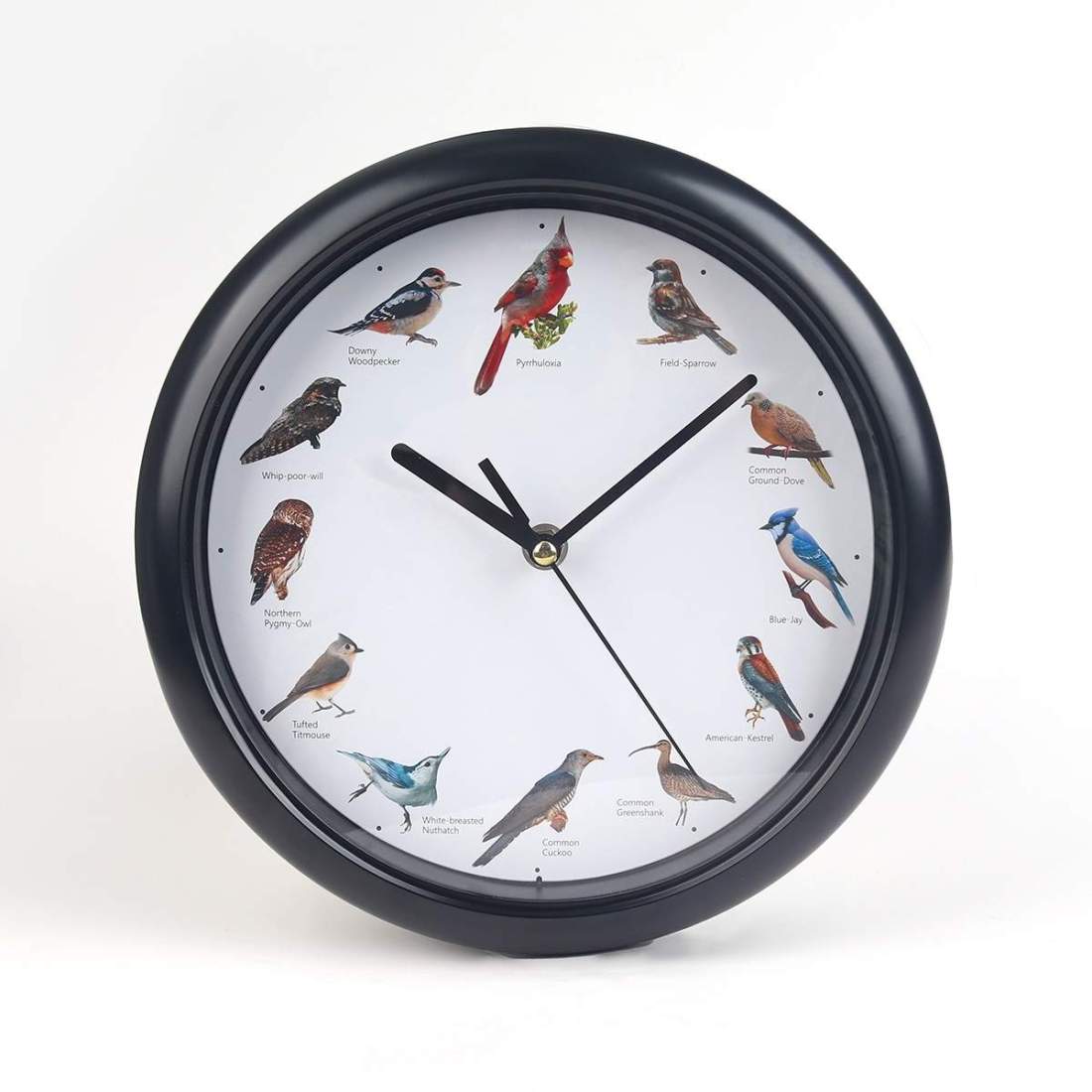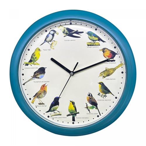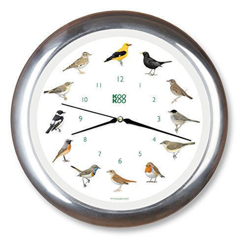 KOOKOO sjungande fåglar kvartsrörelse krom, Klocka med fågelsång, rund väggklocka med naturliga fågelläten