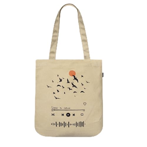 Ecoright estetisk tygväska, premium tygväskor för kvinnor, 100% ekologisk bomull tygväska med dragkedja för resor, högskola, gåvor och daglig användning, Fågelsång, En storlek, Western