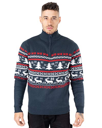 NOROZE Jultröja för män, nyhet, ”Fair Isle”-tröja, tjock, stickad jultröja för kvinnor, unisex, pullover, brittiska storlekar S–2XL, Marinblått Xsp, L