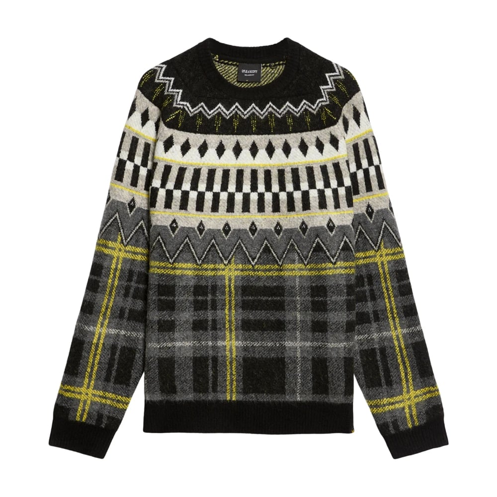 Lyle & Scott, Stickade Tröjor , Herr, S, Mid Knits Fair Isle Tartan Jumper