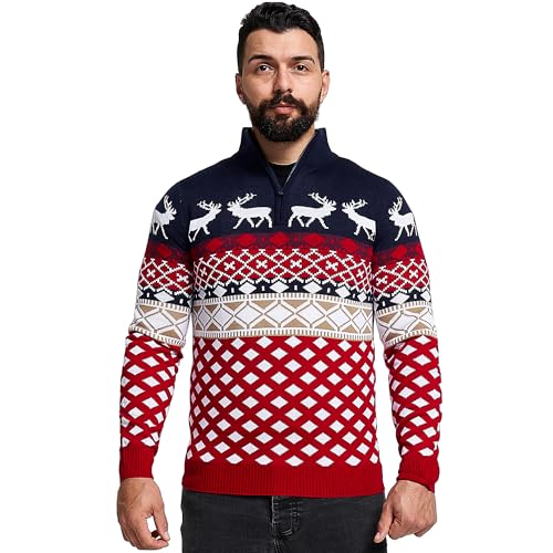 NOROZE Jultröja för män, nyhet, ”Fair Isle”-tröja, tjock, stickad jultröja för kvinnor, unisex, pullover, brittiska storlekar S–2XL, Marinblått Xsp, XL