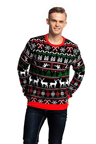 NOROZE Jultröja för män, nyhet, ”Fair Isle”-tröja, tjock, stickad jultröja för kvinnor, unisex, pullover, brittiska storlekar S–2XL, XL