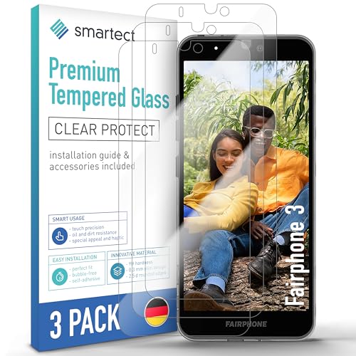 smartect [3 Stycken, Clear] Skärmskydd kompatibel med Fairphone 3/3+, HD Screen Protector i Härdat Glas 9H, Bubbelfri Installation, Anti-Fingeravtryck