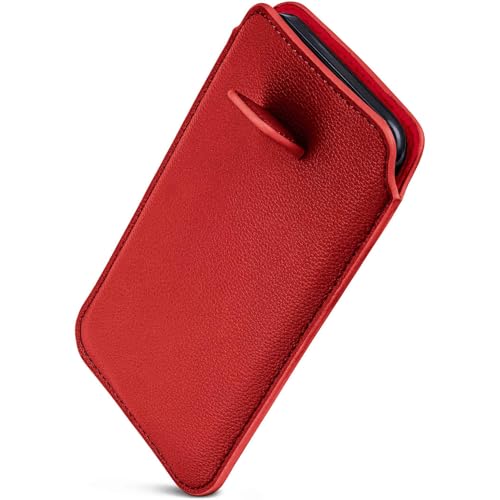 ONEFLOW Smalt fickfodral med återdragningsfunktion kompatibel med Fairphone 3/3 Plus, premiumfoder i mikrofiber + robust dragflik, mörkröd