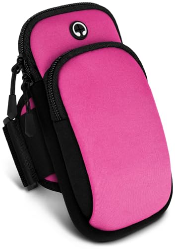 ONEFLOW Premium sportarmband, mobiltelefonarmband för jogging, kompatibelt med Fairphone 3/3 Plus | löparväska, smartphone-armväska, mjuk, 2 fack – sport mobiltelefonhållare, arm, rosa