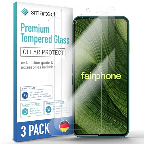 smartect [3 Stycken, Clear] Skärmskydd kompatibel med Fairphone 5, HD Screen Protector i Härdat Glas 9H, Bubbelfri Installation, Anti-Fingeravtryck