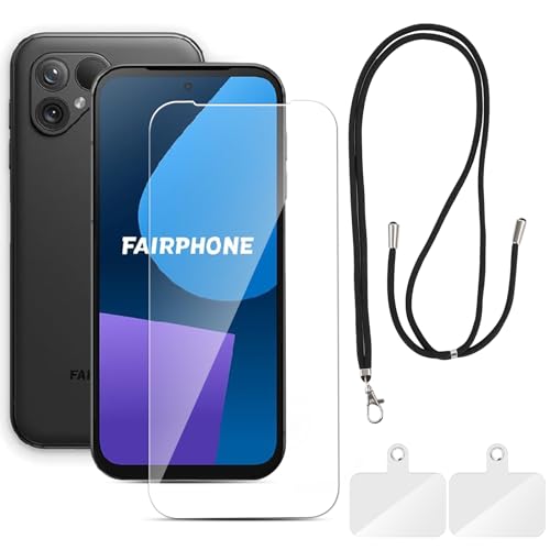 för Fairphone 5 fodral (6,4 tum), hudvänlig svart matt TPU, helkroppsskydd, telefonfodral för Fairphone 5 med HD härdat glas skärmskydd och telefonsnodd – (matt svart)