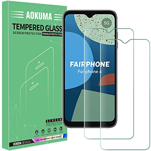 AOKUMA Fairphone 4 skärmskydd i härdat glas, [2-pack] skyddsfilm av högsta kvalitet, fodralvänlig, okrossbar, stötsäker, repsäker oljesäker