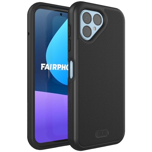TUDIA DualShield-grepp designat för Fairphone 5 fodral (2023), [MergeGrip] militärkvalitet dubbla lager stötsäkert smalt tufft skyddande telefonfodral (svart)