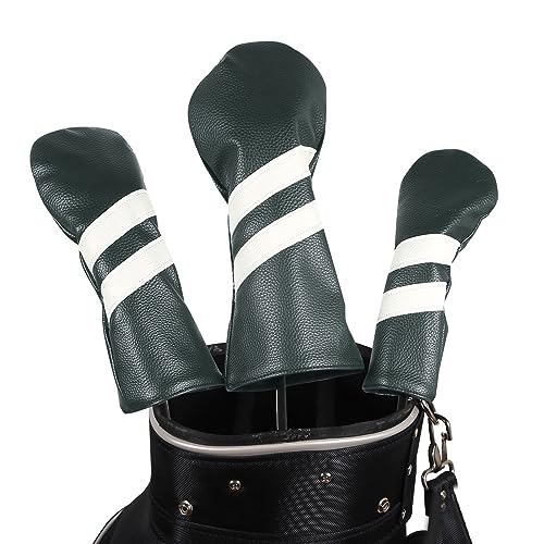 WGFOIP 3 st/set golfchaufför, PU Driver Fairway Wood Hybrid Head Covers med Roterbar Etikett för Sport Utomhus (Mörkgrön)