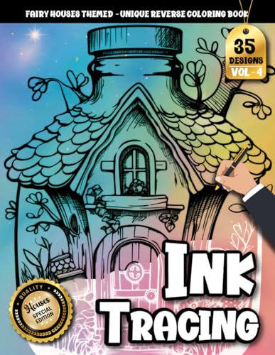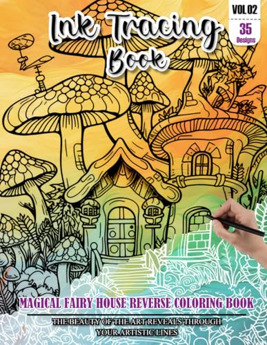 Ink Tracing Book: Stress relief reverse Magical Fairy House Coloring Book for adults: mindfully Follow white lines to Uncover 35 cute Magical Fairy ... a perfect gift for Fairy House lovers(VOL-02)