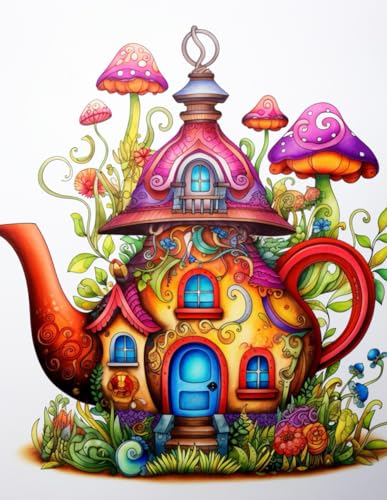 Tiny Fairy Homes Coloring Book: 40 Whimsical Fairy Houses, Teacups & Enchanted Dwellings - Adult Coloring: Detailed Fairy House Designs with Teacups, ... Flowers - Mindful Art Therapy Coloring Pages