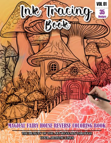 Ink Tracing Book: Stress relief reverse Magical Fairy House Coloring Book for adults: mindfully Follow white lines to Uncover 35 cute Magical Fairy ... a perfect gift for Fairy House lovers(VOL-01)