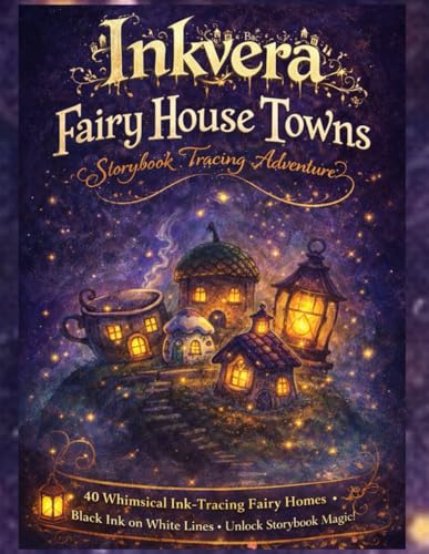 Inkvera: Fairy House Towns – Storybook Tracing Adventure: Reverse Coloring & Ink Tracing Fairy House Book for Adults: 40 Whimsical Pre‑Colored Pages ... Fantasy Art, Stress Relief & Line Tracing