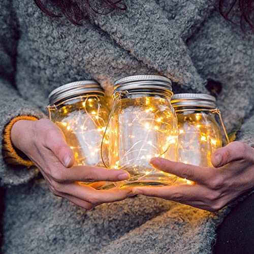 Gadgy ® Solcellslykta Mason Jar glaslykta Fairy Lights Small | (3 stycken) | 20 varmvita lysdioder | Glasslykta med LED slinga för utomhusbruk | Trädgårdslykta