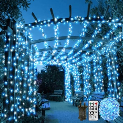100m 600LED Långa Fairy Lights utomhus Koppla in Trädgårds Fairy Lights Utanför Trädlampor Nätdriven vattentät med fjärrkontroll och timer 8 lägen för inomhusgazebo påskdekor (blå+vit)