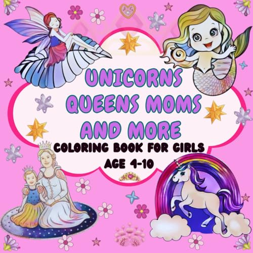 Coloring Book for Girls Age 4-10: Mother's Day. Cute Unicorns, Princesses, Mermaids, Fairies and Queen Moms. Fairy Tales and Fantasy, Discover a World of Color and Magic for Girls or Kids.