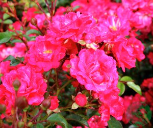 Ros lat. Rosa Polyantha Miniblommande 'Lovely Fairy' Röd