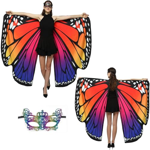 GRAJTCIN Womens Butterfly Wings Shawl Halloween Costume Double Sided Monarch Fairy Pixie Party Cape(66"x54",rose&blue)