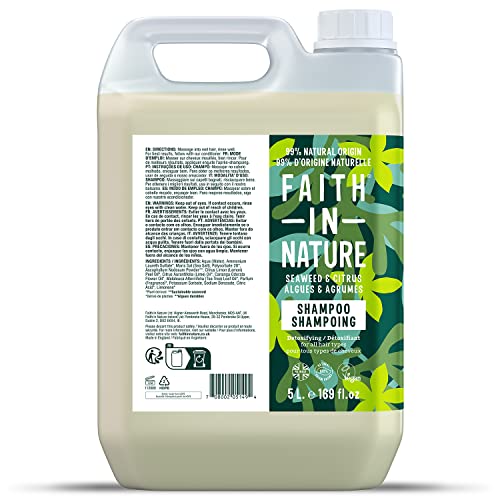 Faith in Nature Naturligt schampo med sjögräs och citrusfrukter, avgiftande, vegansk och djurtestad, SLS- och Parabenfri, alla hårtyper, 5 l påfyllningsbar flaska