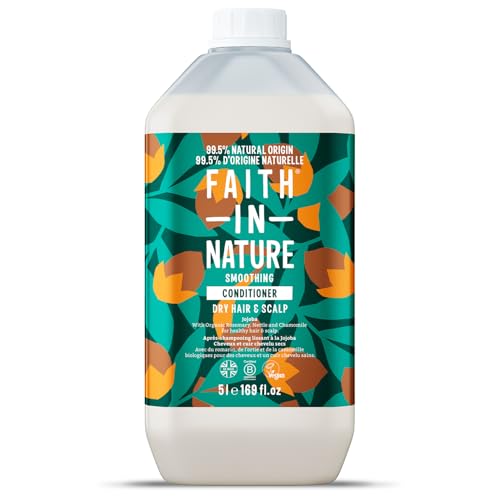 Faith in Nature Naturlig Jojoba-balsam, slätande, vegansk och djurfri, SLS- och Parabenfri, normalt eller torrt hår, 5 l påfyllningsbar flaska