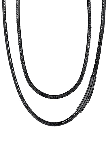 FaithHeart Konstläder kedja svart vävd med stängning för män kvinnor 2/3 mm bred, damkedja herrkedja halsband kvinnor män smycken, kedja med gravyr personliga presenter, Läder