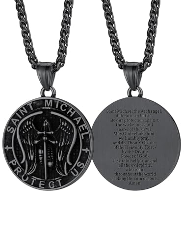 FaithHeart Saint Michael halsband, rostfritt stål ärkeängel St Michael skärm/mynt/hundbricka hänge halsband för män, katolsk bön smycken – med presentask, Rostfritt stål, Ingen ädelsten