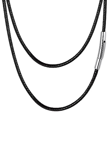 FaithHeart Läderhalsband för män, lås i rostfritt stål, 2/3 mm brett vävt vaxrep, 40–76 cm (16–30 tum) vattentät flätad kedja, svart/brun/rosa/röd/vit, smycken för hänge, anpassbar, 45 cm L x 2 mm W, Läder