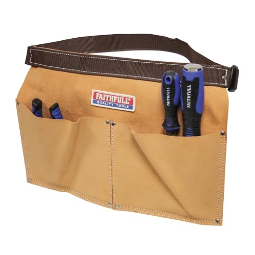 Faithfull Spikväska i Mocka med Dubbelfickor – Verktygsbälte med Hammarögla och Justerbart Bälte för Snickare, Takläggare och Fixare – Brun