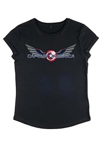 Marvel Kvinnors Falcon and Winter Soldier-Wielding The Shield Rolled Sleeve T-shirt, svart, L, svart, L