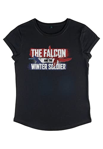 Marvel Kvinnors Falcon and The Winter Soldier-Spray Paint Rolled Sleeve T-shirt, svart, XL, svart, XL