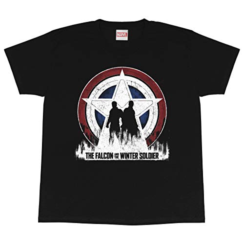 Popgear Girl's Marvel The Falcon and The Winter Soldier Sam & Bucky Silhouette T-shirt svart mode, Svart, 7-8 År