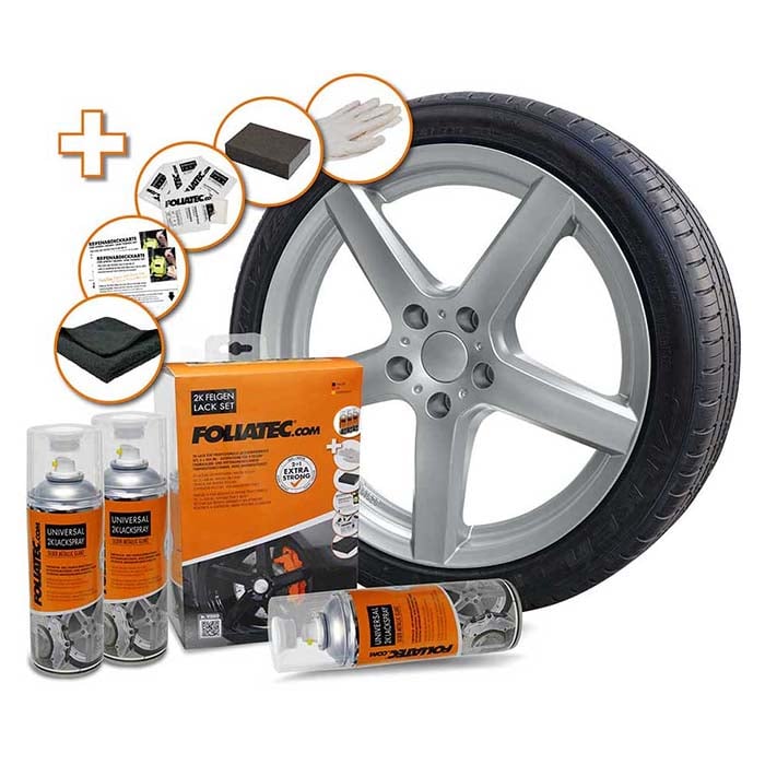 Fälgfärg 2K-sats – Foliatec, blank silver metallic