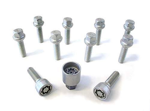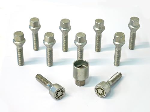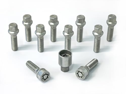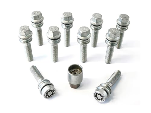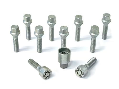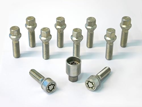 H&R B1453102SET hjulskruvar sats kulbund R14 M14 x 1,50 längd 31 mm – 10 stycken (t.ex. Mercedes och VW Bus T4) – inklusive fälglås
