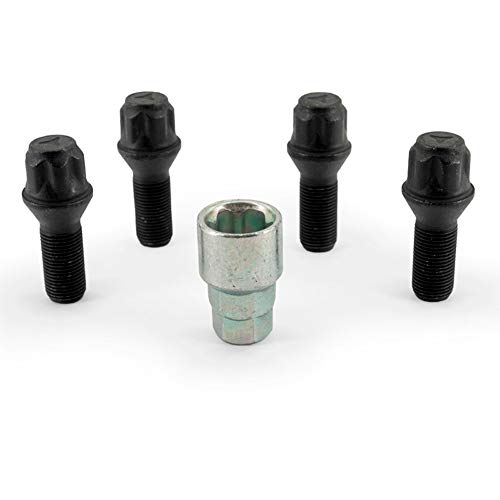 H&R B1452802SET hjulskruvar sats kulstift R14 M14 x 1,50 längd 28 mm – svart-10 stycken (t.ex. Mercedes och VW Bus T4) – inklusive fälglås