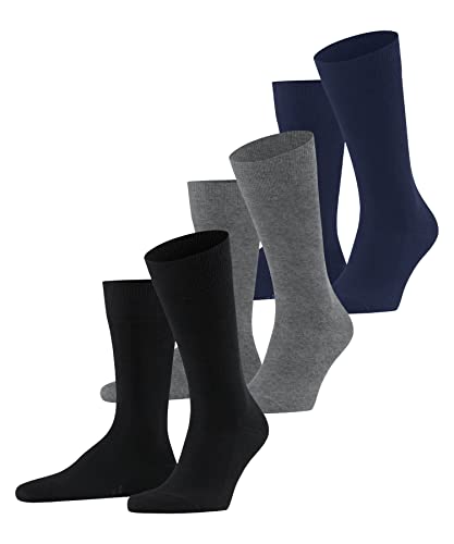 FALKE herr Strumpor Family Multipack M So hållbar bomull enfärgat 3 par, Flera färger Black Grey Blue 0010, 43-46