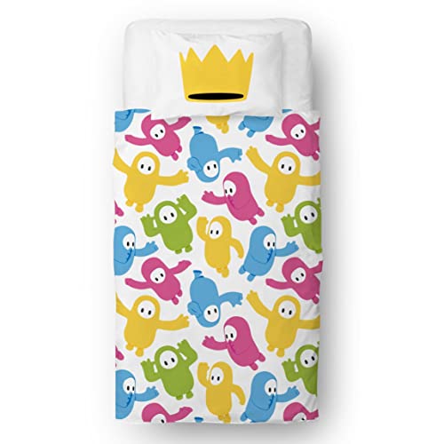 Fall Guys officiella påslakan för barnspel | vändbara 2-sidigt bäddset inklusive matchande örngott | Character World Brands enkelsäng set