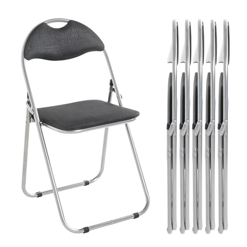 HAKU Möbel Fällbar stol, set om 6 svart, Stoppad rygg, stoppad sits, stål - Storlek: B 44,00 cm x H 80,00 cm x D 47,00 cm, Stil: Modern