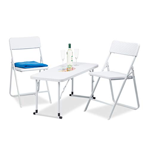 Avslappnade fällbara trädgårdsmöbler set, 3-delar, höjdjusterbart bord, H x B x D: app. 74 x 100 x 43 cm 74 x 100 x 43.5 cm Vitt