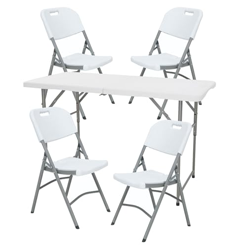 Fällbart höjdjusterbart bord 122x60x50-74 cm och set med 4 fällbara stolar 51x45x85,5 cm, perfekt för utomhusbruk