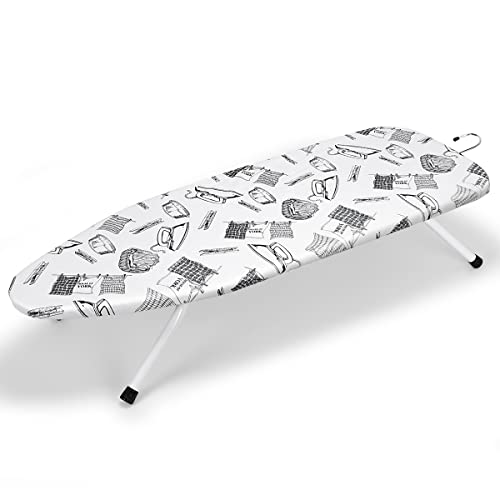 Duwee Strykbräda för bord, liten strykbräda med förvaringskrok, fällbara ben, värmebeständigt överdrag, 92 x 34 cm, tryckt
