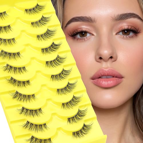 EMEDA 10 Par Naturliga Falska Halva Fransar Klart Band Accent Halva Ögonfransar Genomskinligt Band Återanvändbar Lösögonfransar Transparent Band False Eyelashes (Accent Lashes)