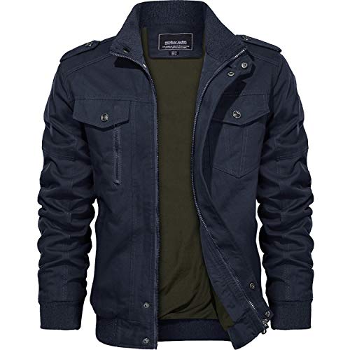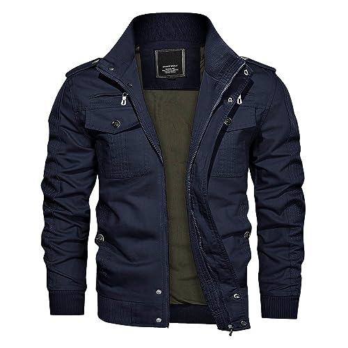 KEFITEVD Övergångsjacka för män, lätt vinterjacka, höstjacka, flygande jacka, ståkrage, bomberjacka, bomull, army, fältjacka, cargojacka, män, Blouson Windbreaker, Marinblå, M