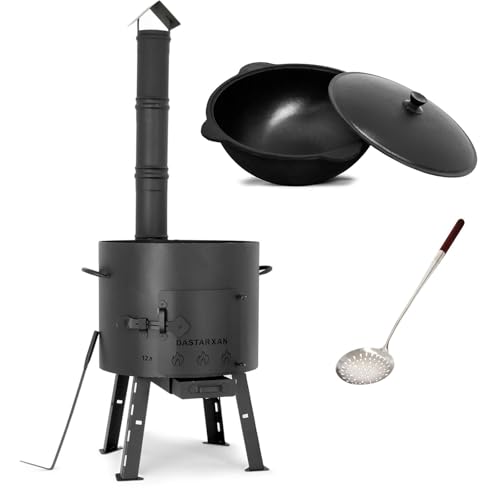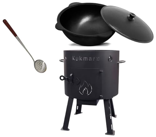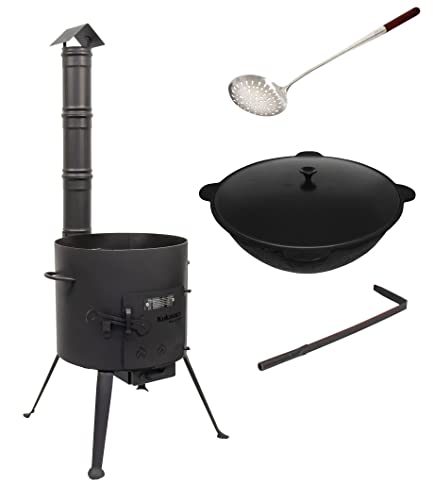 Rukauf. Set med Utschak eldugn 45 cm + 15 liter Kazan av aluminium + hålslev – fältkök, gulasch, vattenkokare, utomhus