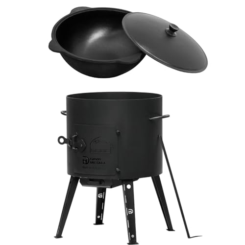 Set Utschak, 53 cm + 22 liter kazan av gjuten aluminium, fältkök, gulasch-vattenkokare, eldugn, utomhus