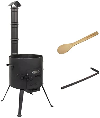 Set Utschak med avgasrör, 40 cm + 12 liter gjutjärn kazan inomhus slät + 50 cm skumsked – fältkök, gulashpanna, eldpanna, eldugn, utomhus, för Kazan 12 l