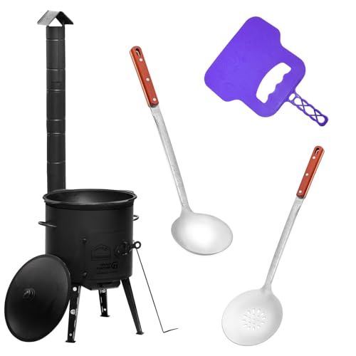 mara Utschak med avgasrör, 45 cm 16 liter gjutjärn kazan inomhus slät 50 cm skumsked – fältkök, gulashpanna, eldpanna, eldugn, utomhus för Kazan Kazan 15 16 l